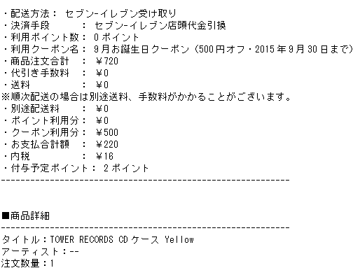 だいたいは『〇千円以上のご購入で〇円引き』という内容のものであまり魅力的ではないのですが、これはお得だ!と思うものはクーポンを利用して購入させてもらいました。