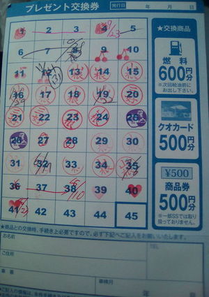 ガソリンスタンドのスタンプカードがもうすぐ一杯になりそうです。