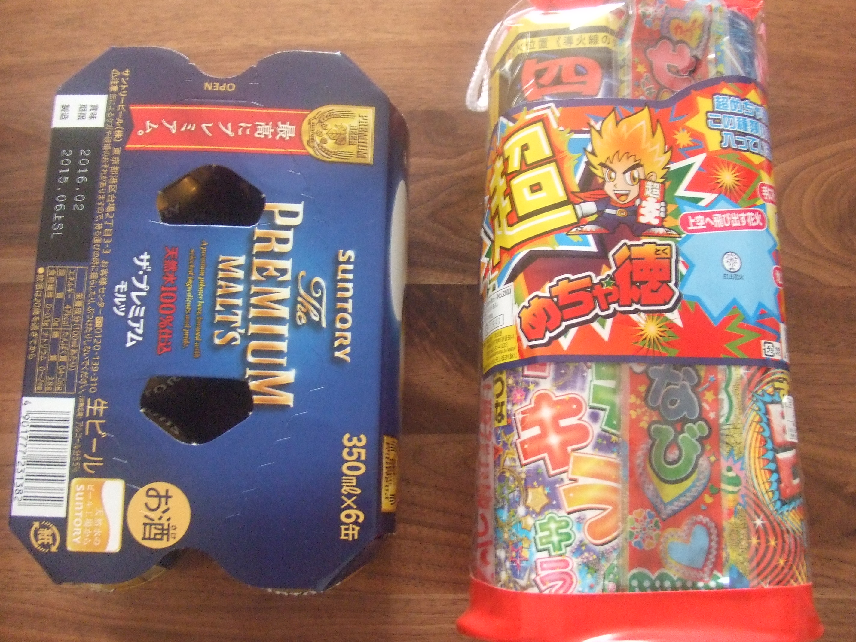 先着プレゼントのプレモルと花火です。