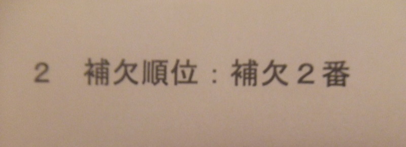 補欠の2番というほぼハズレ確定の結果に終わりました。