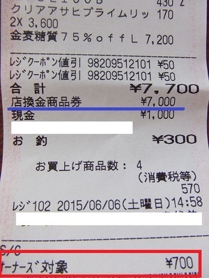 旦那のビール(第3ですが)の在庫がなくなってきたのでプレミアム商品券を持って買いに行ってもらいました。