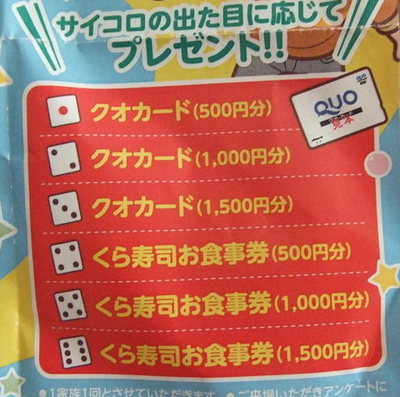 アンケートには答えましたが、玄関を出てもサイコロを振らせてくれる気配がないのでチラシを持参していたので見せて振らせてもらいました。